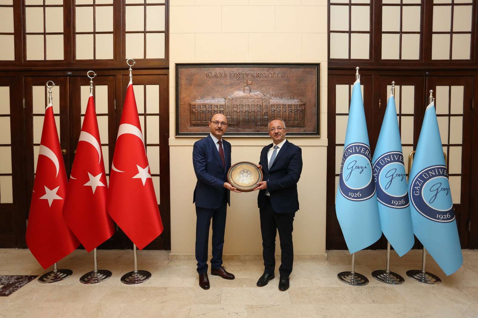 Genel Başkanımız Talip Geylan, Gazi Üniversitesi Rektörlüğü’ne atanan Prof. Dr. Uğur Ünal’ı 05.09.2024 tarihinde ziyaret etti. Ziyarette Genel Başkan’a, Genel Başkan Yardımcımız Cengiz Kocakaplan, Ankara 7 No’lu Şube Başkanı Tayfun Fındık da eşlik etti.