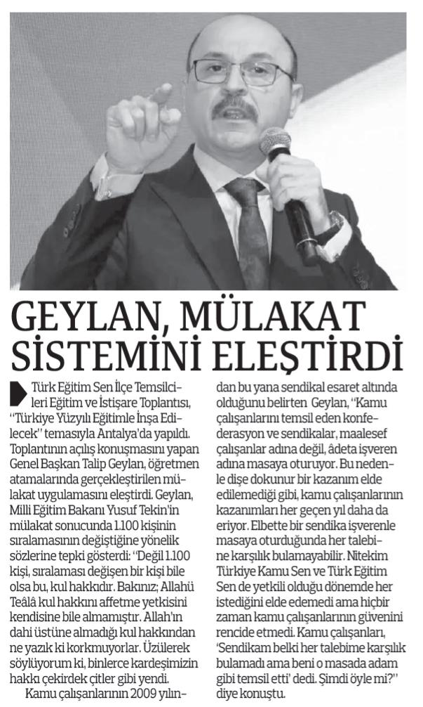 Geylan, Mülakat Sistemine Eleştirdi – Türkgün