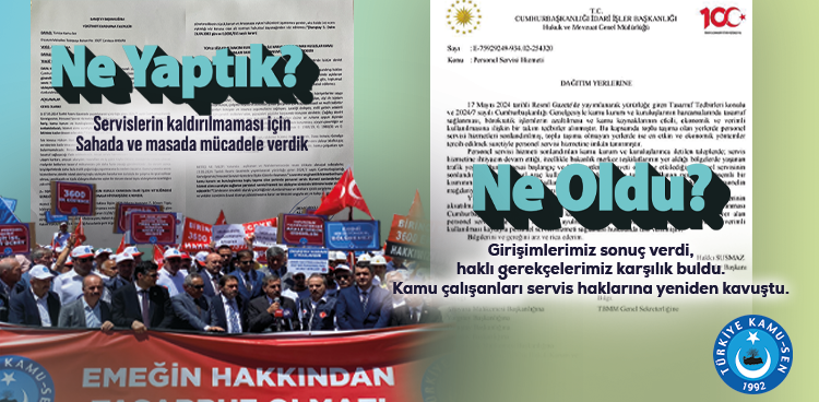 Türkiye Kamu-Sen Genel Başkanı Önder Kahveci tasarruf tedbirleri kapsamında memur servislerinin kaldırılması ve bu kararın Cumhurbaşkanlığı genelgesi ile iptal edilmesini değerlendirerek, “Girişimlerimiz sonuç verdi, haklı gerekçelerimiz karşılık buldu” dedi.