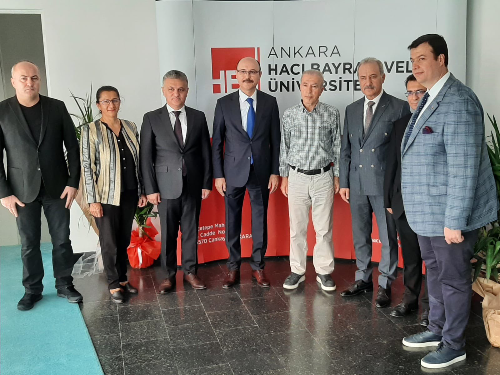 Türk Eğitim-Sen’in üniversiteler ve üniversite çalışanları ile ilgili çalışmalarını Sayın Rektöre aktaran Geylan, “Uluslararası Türk Dünyası Mühendislik ve Fen Bilimleri Kongresi ile Eğitim Bilimleri ve Sosyal Bilimler Kongresi düzenliyoruz. Uluslararası hakemli dergimiz ‘Eğitim ve Toplum’ akademik ve bilim hayatımıza ışık tutmaktadır. Yetkin bilim insanları ile üniversitelerimizin sorunlarını tespit eden ve çözüm önerileri geliştiren raporlar yayınlıyoruz. Biliyoruz ki bilim hayatını desteklemek ülkemize artı değer katmaktadır ve biz bu noktada üzerimize düşen sorumluluğu yerine getirmeye devam edeceğiz. Bu kapsamda zengin bir akademik alt yapıya sahip olan Hacı Bayram Veli Üniversitesiyle de geliştirdiğimiz iyi ilişkiler ve çalışmaların sürdürülmesi eğitim hayatımıza ciddi katkı sunmaktadır.” dedi.