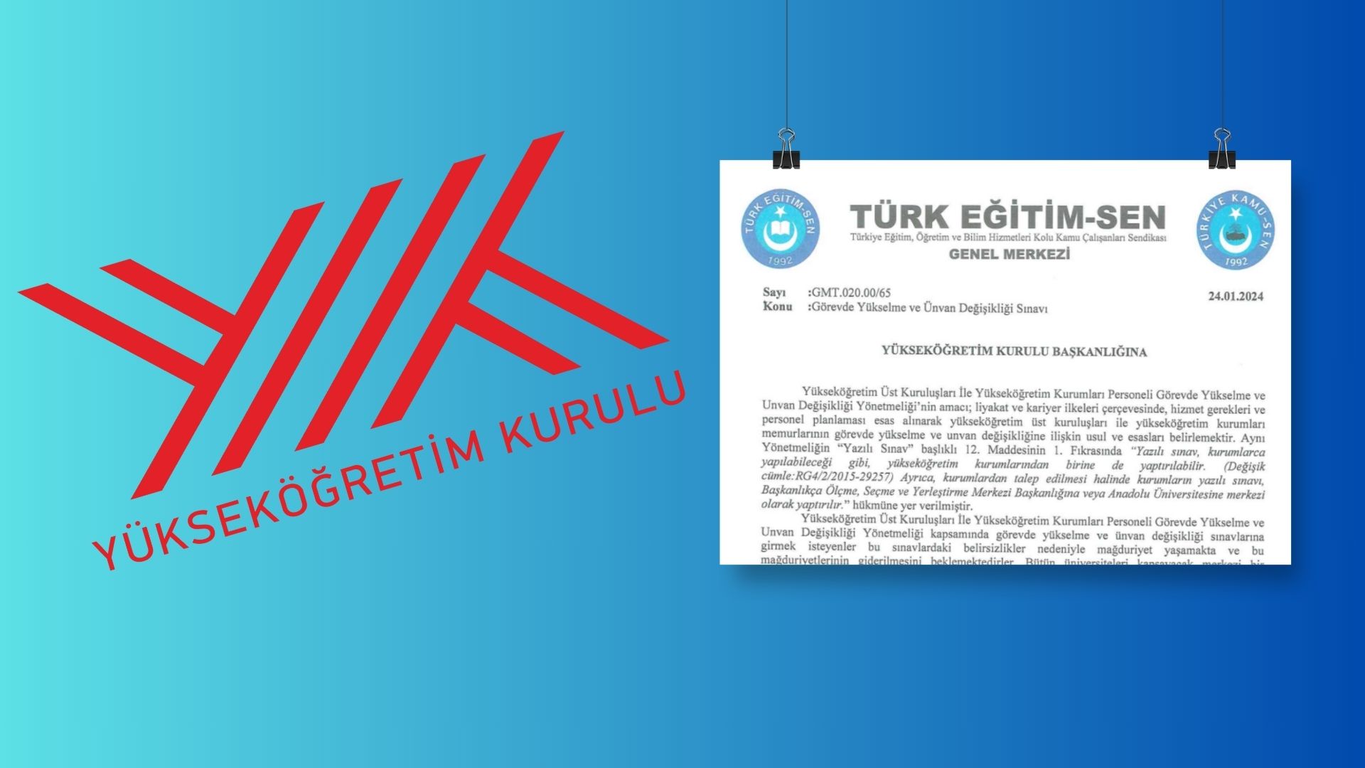YÖK 2024 Yılı Görevde Yükselme ve Unvan Değişikliği Merkezi Yazılı Sınavı yapılacağını açıkladı. Buna göre Yükseköğretim Üst Kuruluşları ile Yükseköğretim Kurumları Personeline yönelik 2024 yılı Görevde Yükselme ve Ünvan Değişikliği Merkezi Yazılı Sınav Duyurusu yayınlanmıştır.  Adayların Kurumlarına müracaatı için son başvuru tarihi 31 Mayıs 2024 olarak belirlenmiştir. Türk Eğitim-Sen Akademi YÖK Görevde Yükselme sınavı içeriği güncel olarak sitemizde yer alacaktır.
